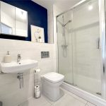 The main bathroom includes a full-size bath with mains fed shower, a floating basin and WC, and coordinating grey tiling. There is also a handy ladder radiator. The proportion of this room is excellent. Parking The apartment comes with one allocated parking space, and there’s additional off and on-street parking available for guests.