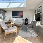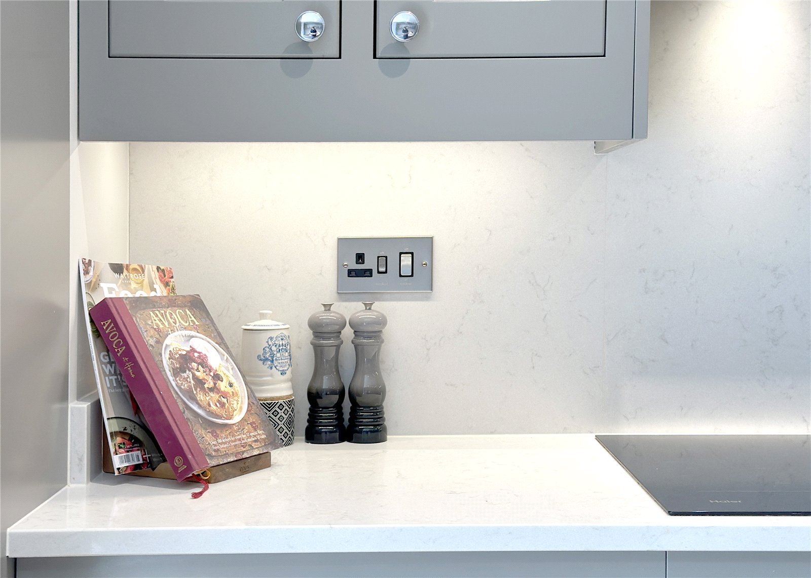 The third bedroom is also located at the rear of the house to take in the garden view, and also has the benefit of built-in wardrobes. Again, this room is stylish with a seaside palette, offering laminate flooring for ease of cleaning, and delivering good floor area.
