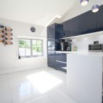 The kitchen/breakfast space is immaculate and offers hi-end finish and fitments. There are navy wall and base units with contrasting white Corian worktops. The large white porcelain floor tiles stylishly compliment the kitchen units. The kitchen consists of a 'NEFF' large induction hob, a 'NEFF' double oven/grill/microwave, and a 'SCHOCK' sink with chrome tap and integrated instant hot tap, plus an integral larder fridge freezer, integral 'Hotpoint' washing machine, slimline wine cooler and finally a 'Kenwood dishwasher'. This kitchen really has everything that you could need. It has the benefit of a Velux window with electric solar powered blind and window to the side elevation. Additionally there are plenty of power sockets, some with USB points, around the worktops for your freestanding appliances and charging. With the benefit of two feature 'Tom Dixon' pendant lights over hanging the breakfast bar, and additional spotlights within the kitchen unit. The kitchen is a true representation of the hi-end finish of this apartment. The room also benefits from a TV point and integral sound system within the ceiling.