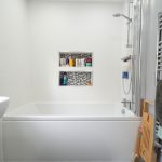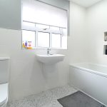 The family bathroom is really modern, offering a white bright suite, with bath having a mains-fed shower attachment over with folding shower screen, a floating wash basin with mixer tap, and a WC with dual flush. In addition to all this, this space is beautifully tiled with modern wall tiling, easy to manage flooring, and a large window to the side elevation to ensure plenty of natural light to get your day started, and a ladder wall mounted radiator.