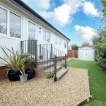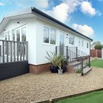 APPROACH The property is tucked away in a quiet part of the park, having a shared access to the front with a driveway to the side. The first image of the frontage as you arrive with the raised decking area with glass frontage, and looking at the double French doors immediately gives you a sense of the style and quality finish of the park home that you’re about to view. The door to the park home is set to the side having steps rising and with a landscaped garden area and a pebbled area, which is perfect for your pots and sun loungers. There is an artificial lawn area around to save the hassle of cutting the lawns in the summertime. A useful metal shed for your storage with power, and the garden flows its way round the back of the park home and around to the drive.