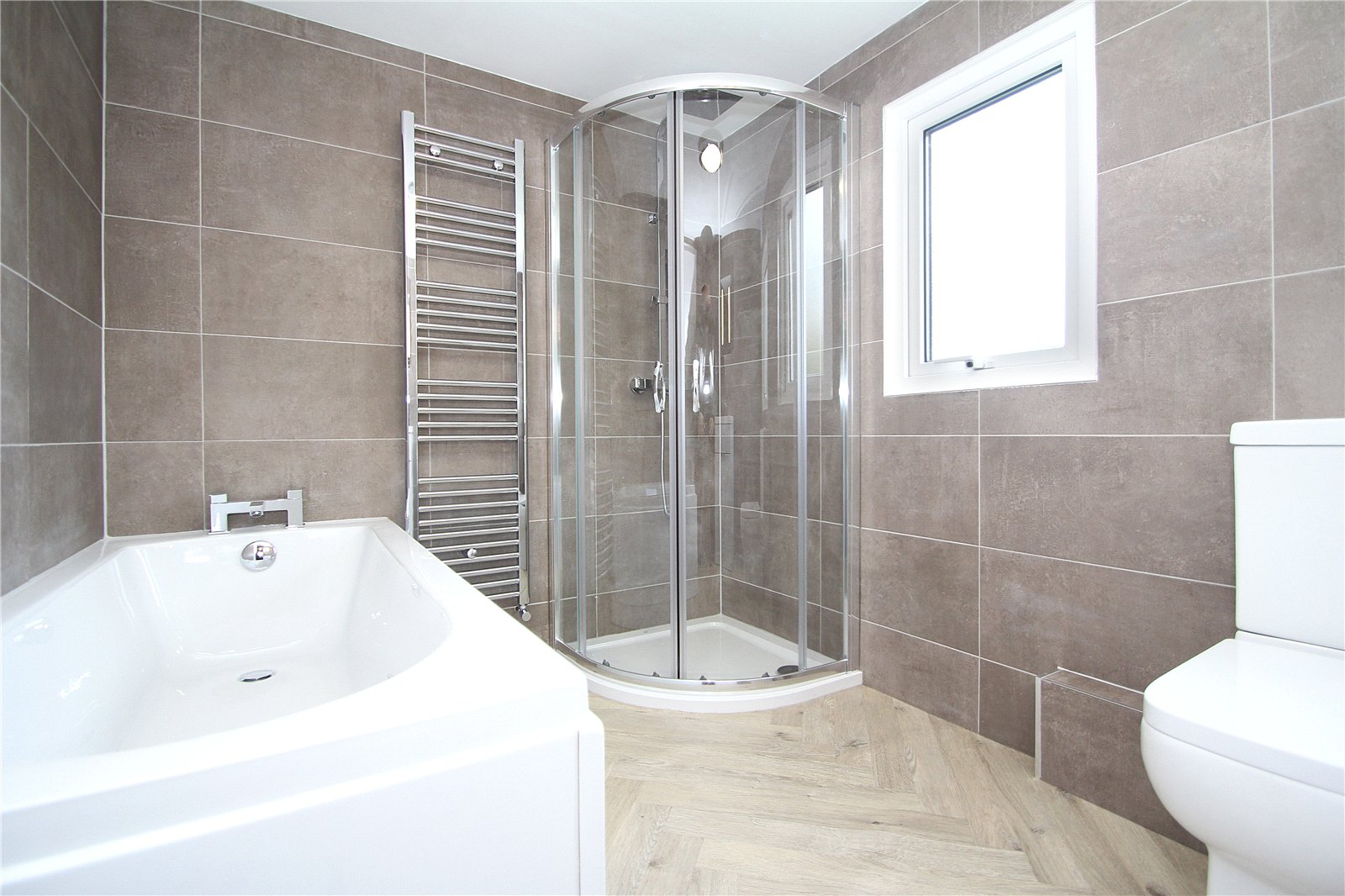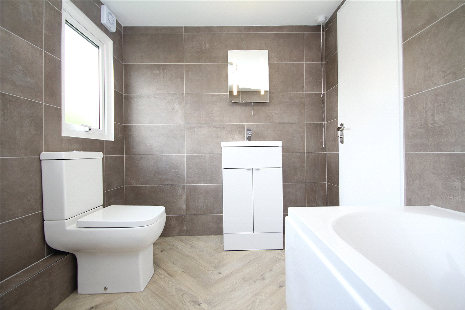 The main bathroom is super opulent, offering a brand new suite, comprising of a bath with chrome mixer tap and benefiting from a separate corner shower with a mains-fed chrome hand held and drench attachments, beautifully complimented by a glass shower door. The toilet is dual flush, and there is a white hi-gloss vanity unit which is perfect for tucking away your toiletries, having a hand wash basin and chrome mixer tap as well as a little vanity mirror above. The bathroom is beautifully styled with modern natural tiles and wood-effect vinyl flooring perfect for easy cleaning, as well as there being twin opening double glazed frosted windows to the side elevation, extractor and ceiling light.